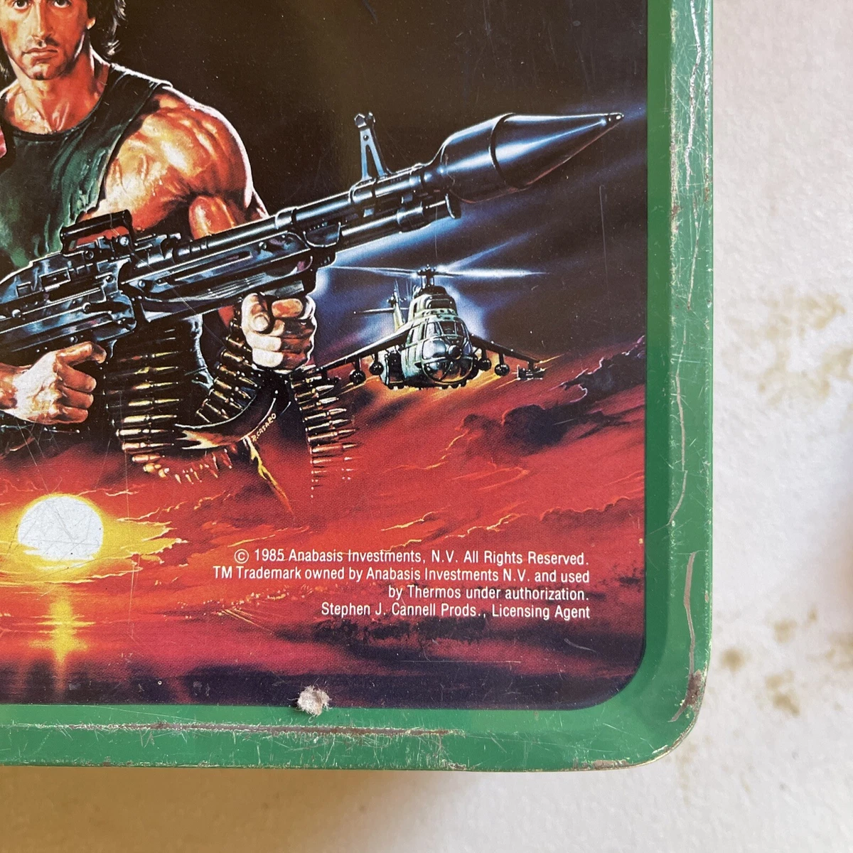 Rambo 1985 Vintage Metal Lunch Box And Thermos Green Sylvester Stallone Ebay